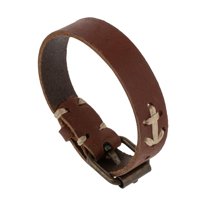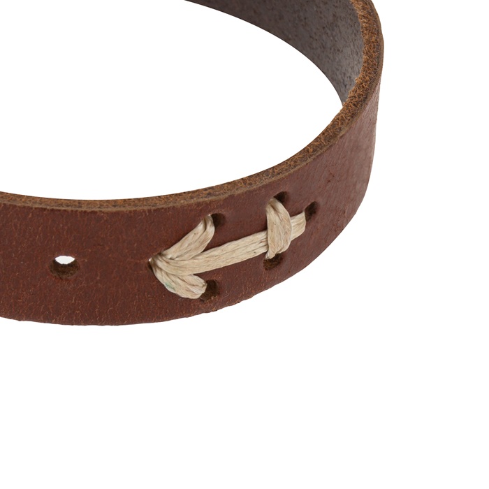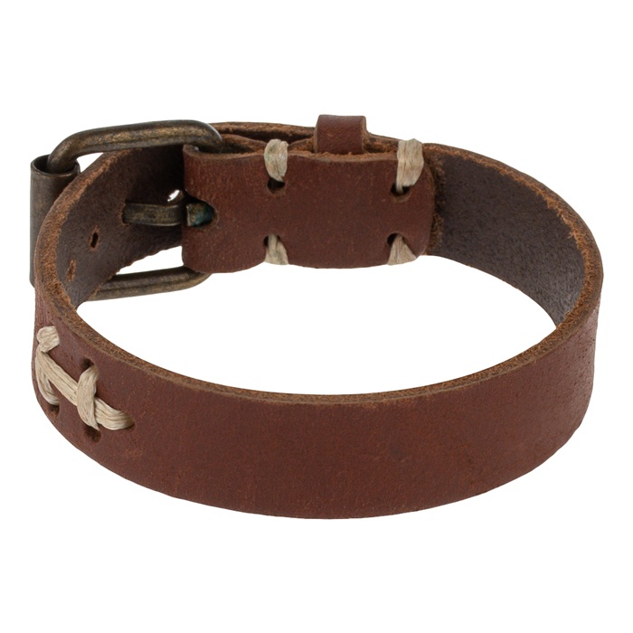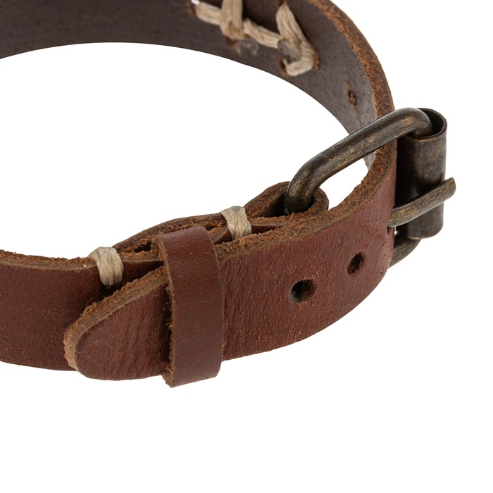 دستبند چرمی مردانه قهوه ای مدل Deri 1035 با قفل سگکی کمربندی و دوخت تزیینی ساخت ترکیه