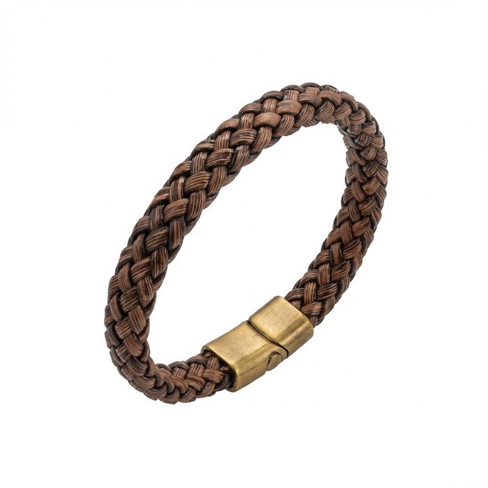 دستبند مردانه چرمی بافت حصیری قهوه ای مدل Deri 721 ساخت ترکیه با قفل برنزی